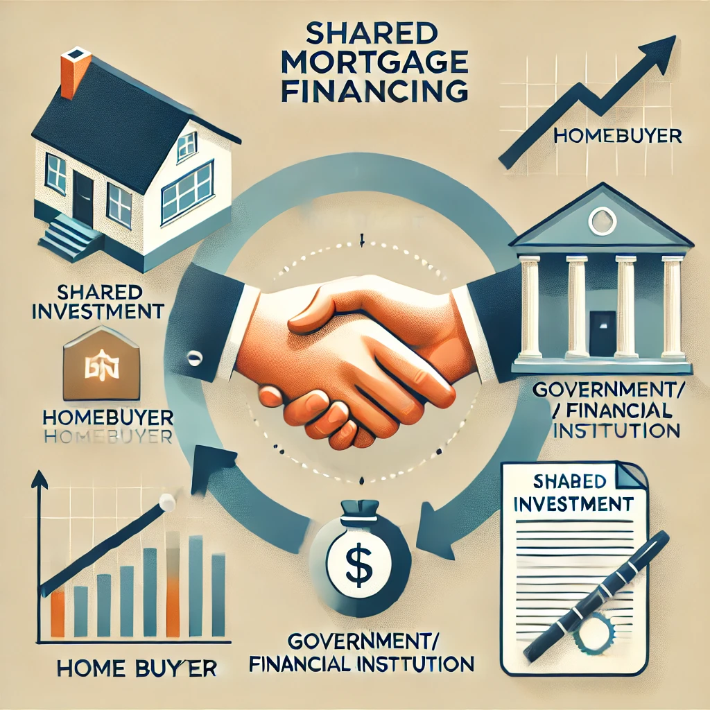 공유형 모기지 융자는 기본적으로 주택 구매자가 전액을 부담하지 않고, 일부 금액을 금융 기관이나 정부에서 지원받아 주택을 공동 소유하는 형태입니다. 지원을 받은 대가로, 주택 가치가 상승할 경우 금융 기관이나 정부가 일정 비율의 이익을 가져가게 됩니다.